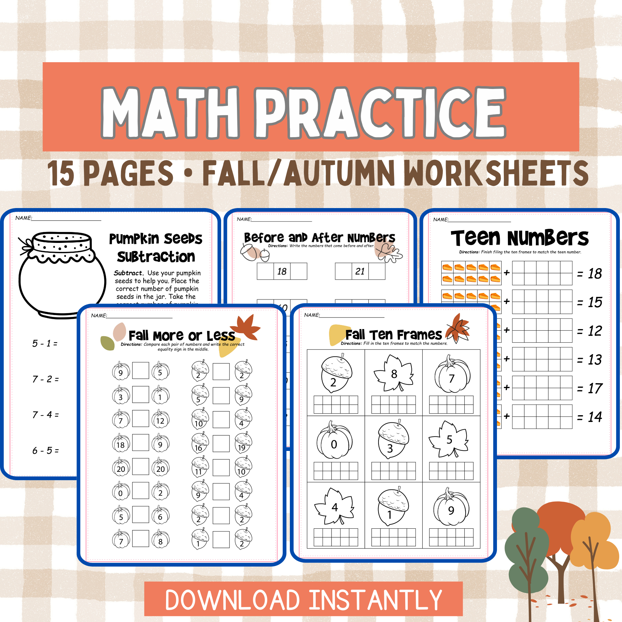 From counting pumpkins to solving autumn-themed word problems, these worksheets offer a wide variety of math exercises that are perfect for the fall season. Children can practice their math skills while also getting into the spirit of the season with cute and colorful fall-themed graphics.