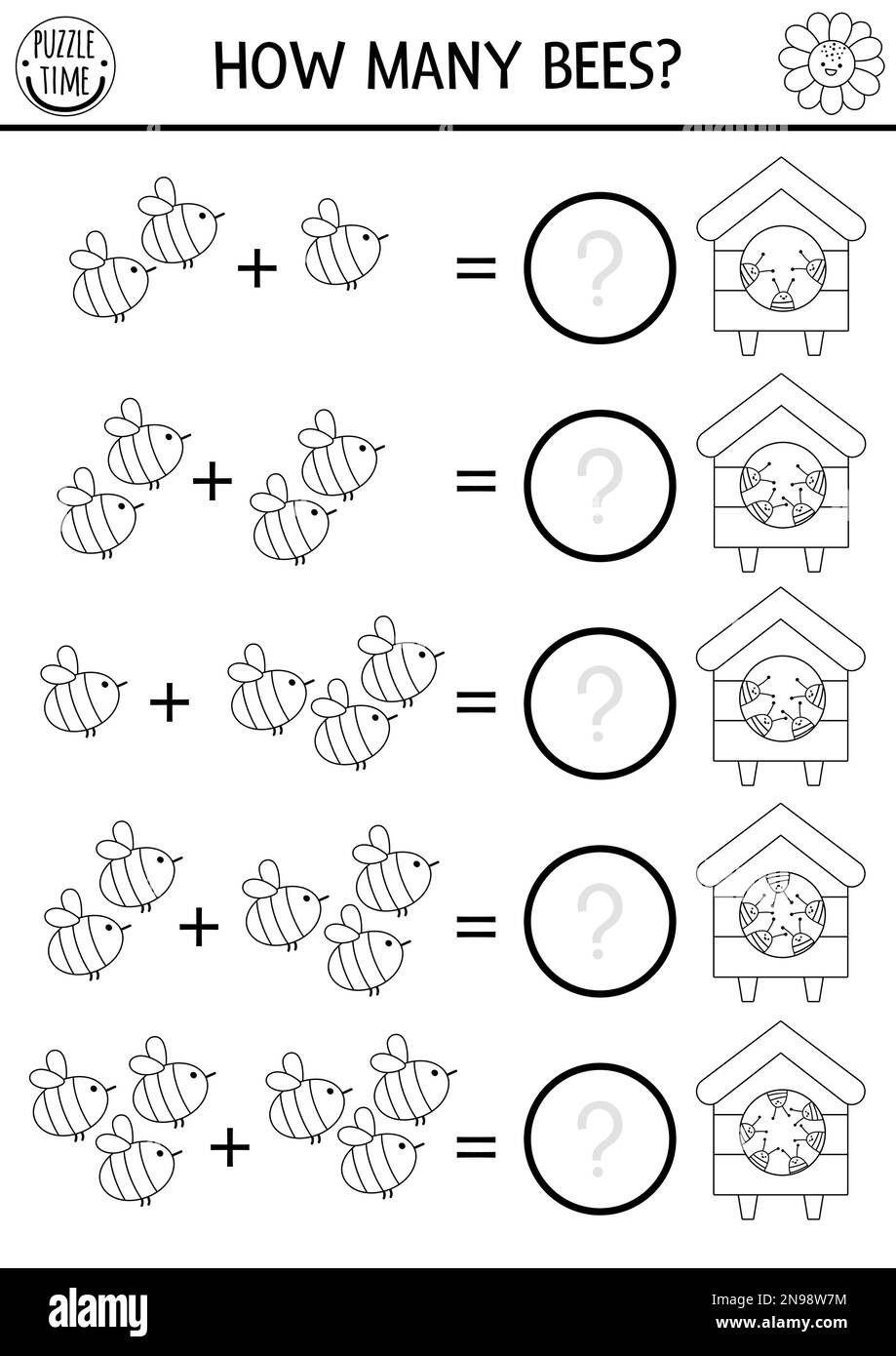 How Many Bees Game With Cute Insects On The Farm Black And White Math Addition Activity Simple Line Farm Printable Counting Worksheet Or Coloring Pa Stock Vector Image U0026 Art Alamy