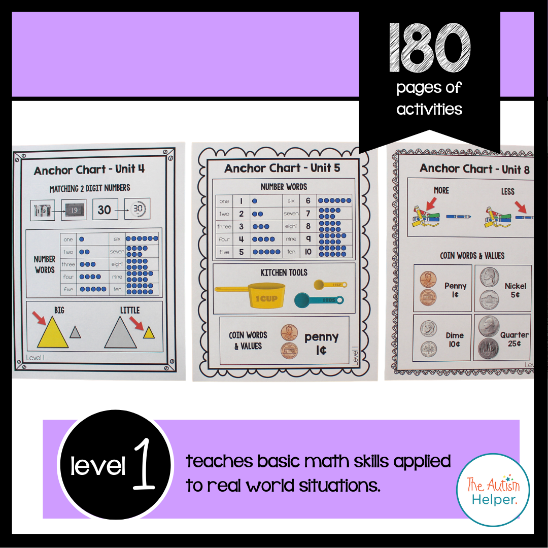 Functional Math Leveled Daily Curriculum LEVEL 1 Worksheets Library