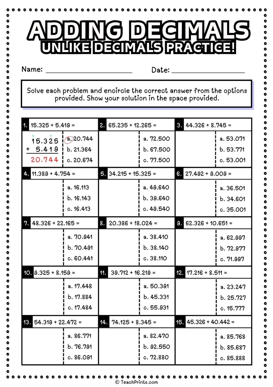 Addition can be tricky, especially when decimals are involved. But with our worksheet, you’ll be a pro in no time. Simply download, print, and get ready to tackle some decimal problems!