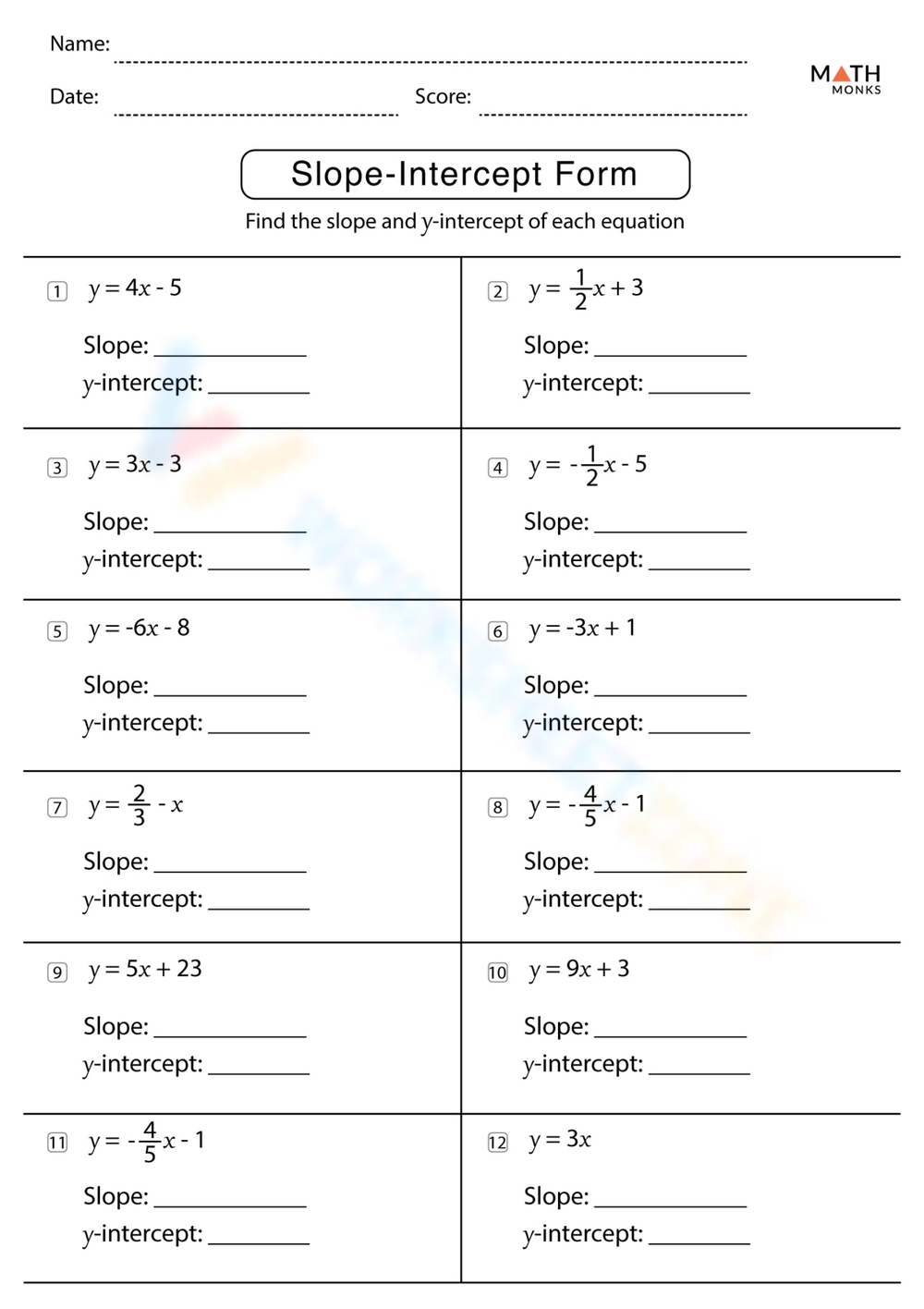 So why wait? Start practicing the slope-intercept form with our free printable math worksheets today and take your math skills to the next level!