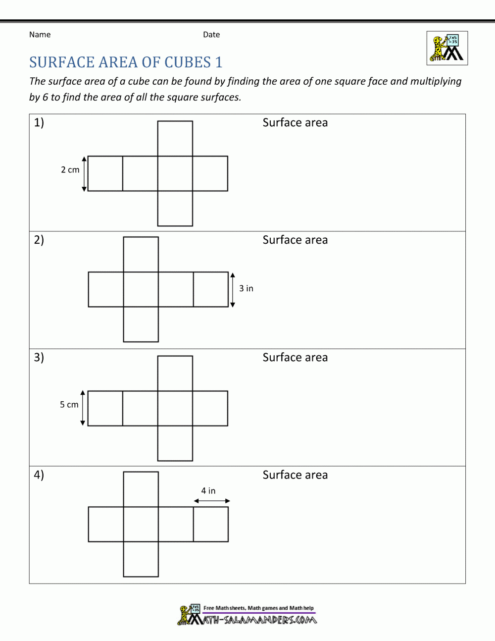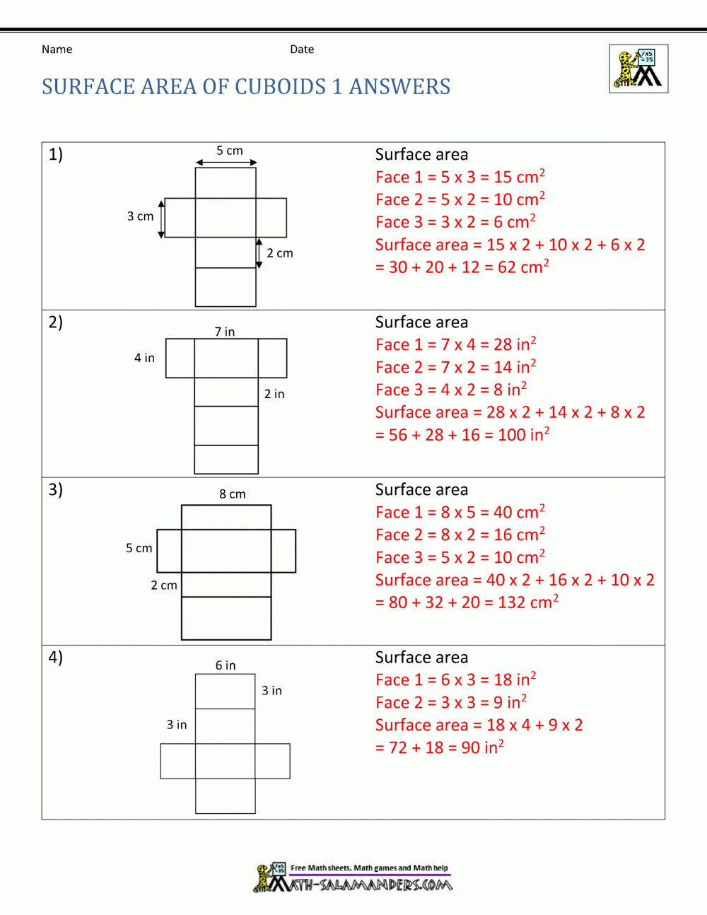 Free Printable Math Worksheets Surface Area