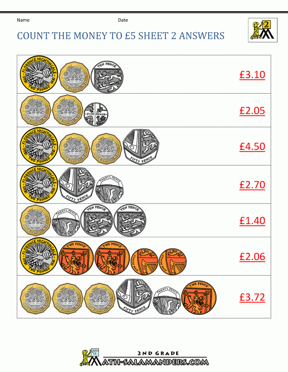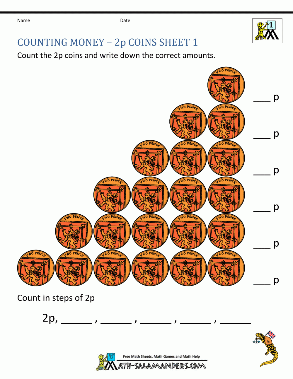 Free Money Worksheets UK Coins