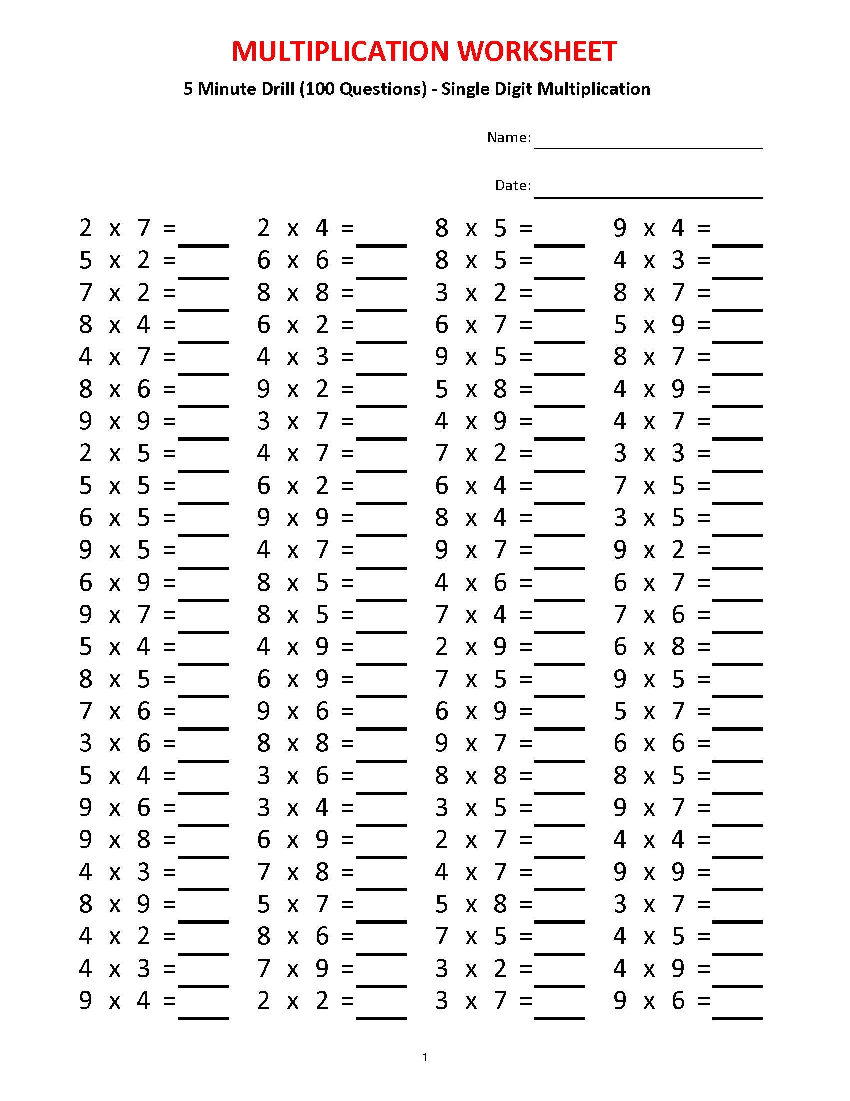 Free Printable Multiplication Drills Worksheets