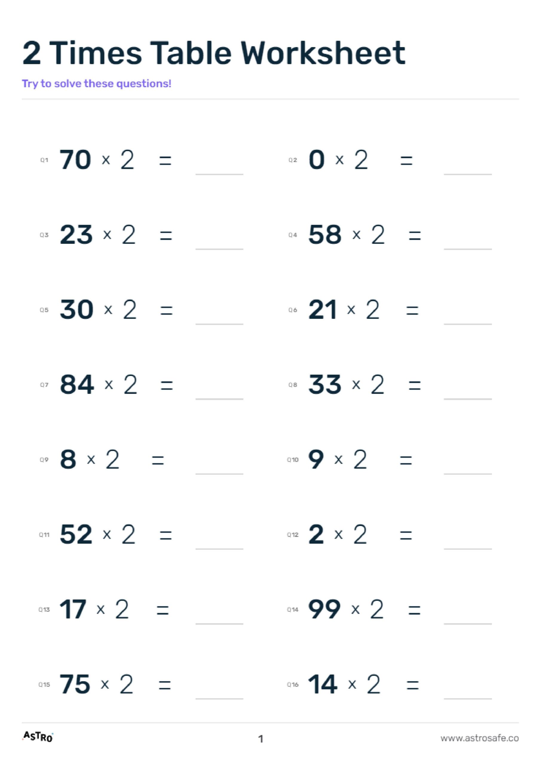 2 Times Table Lessons Printable Worksheets U0026 Charts AstroSafe
