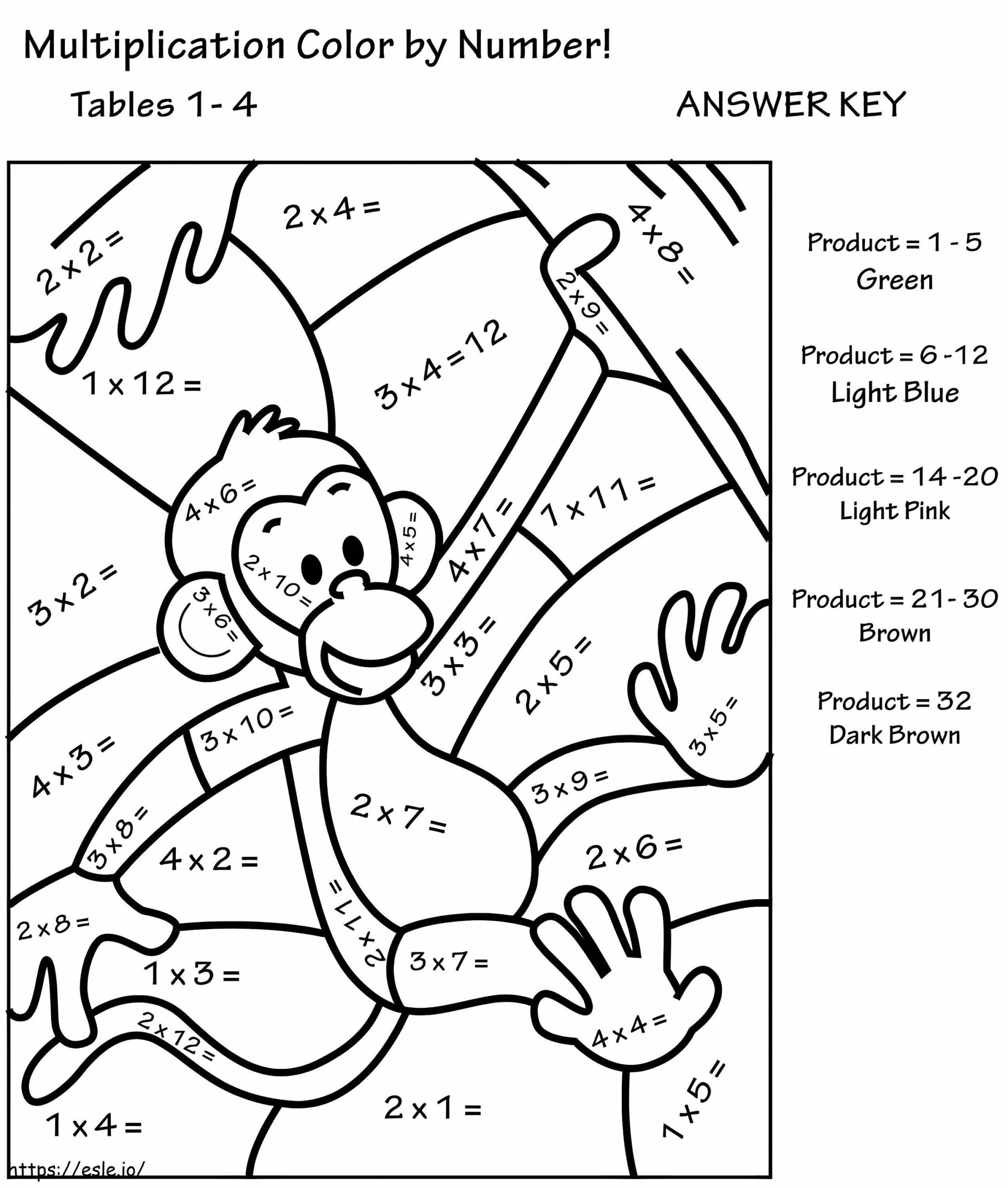 Monkey Multiplication Color By Number Coloring Page