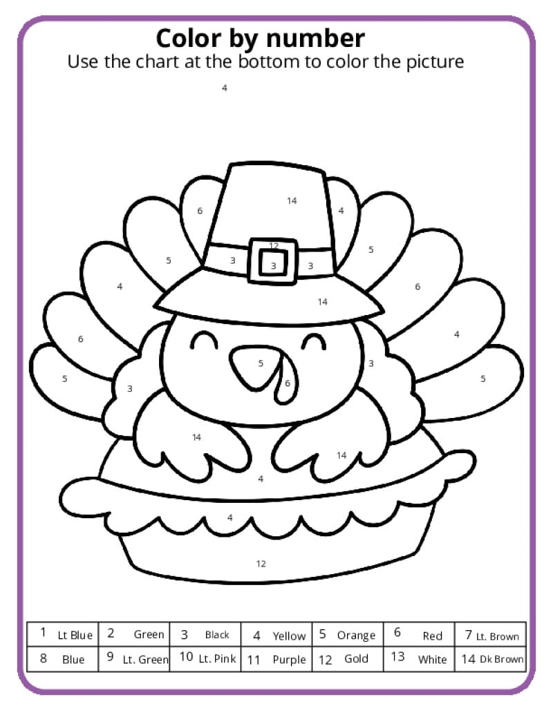 Thanksgiving Color By Number Pages K12 Math Worksheets