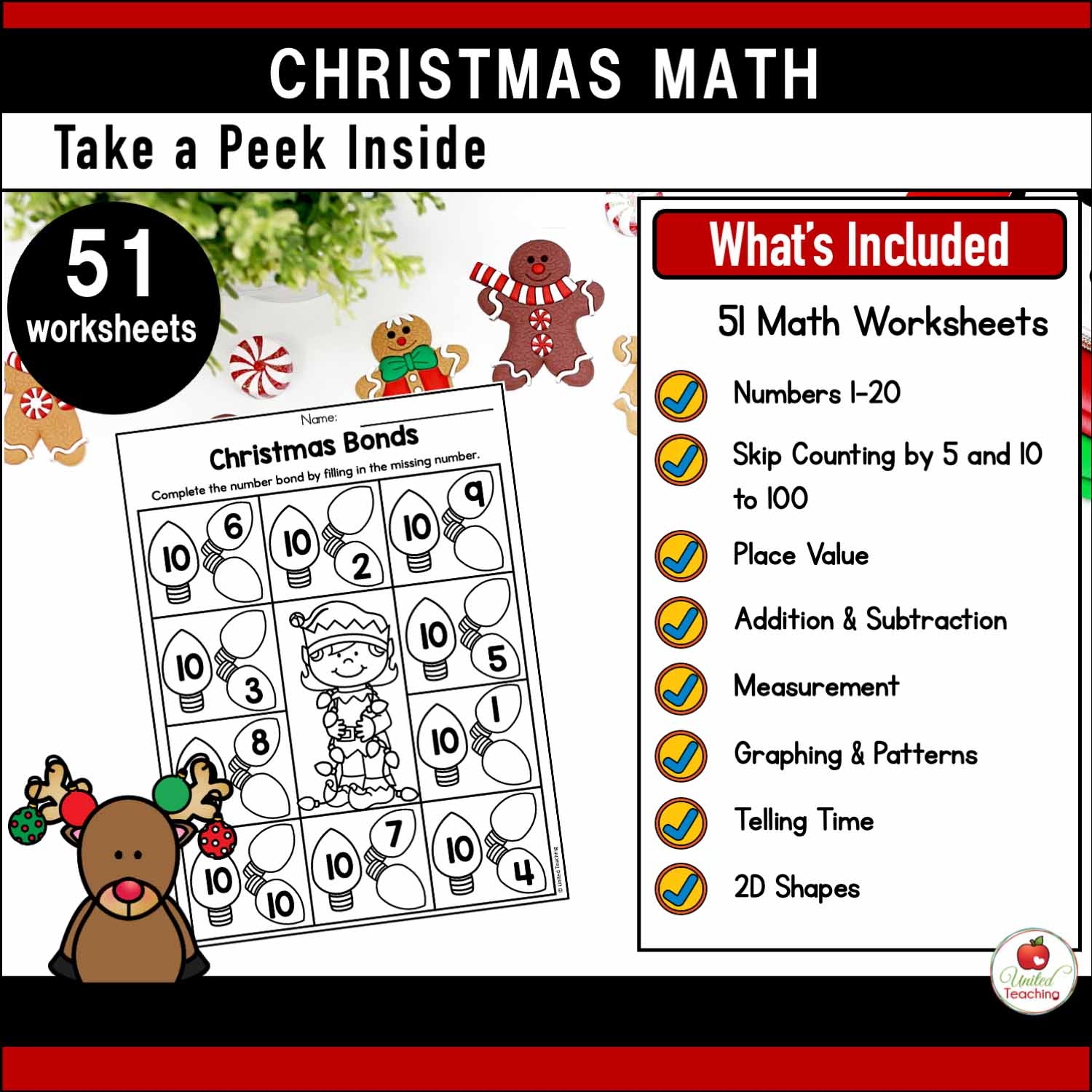 Christmas Math Worksheets Kindergarten Packet United Teaching