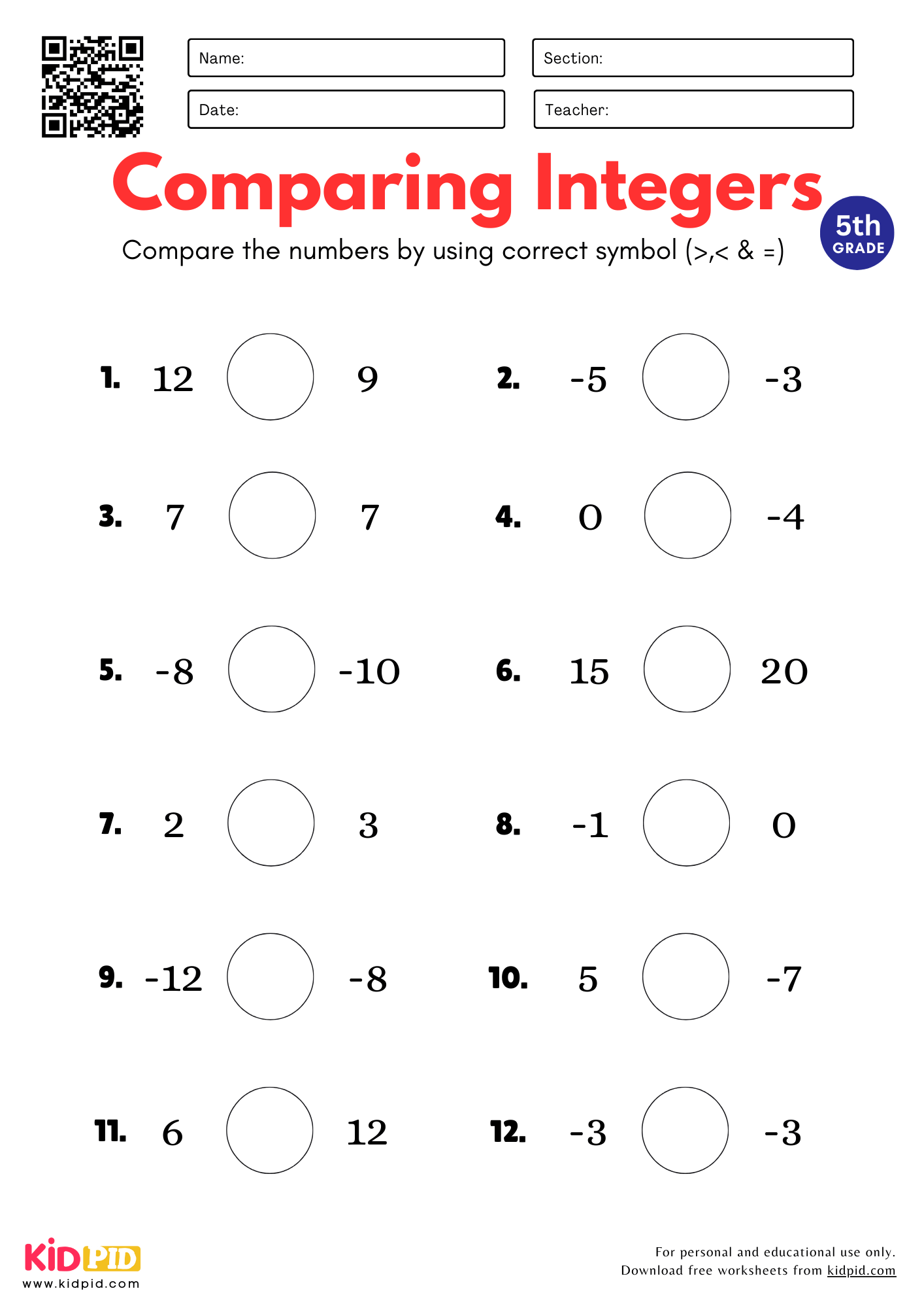 Integers Worksheet For Grade 5 Kidpid