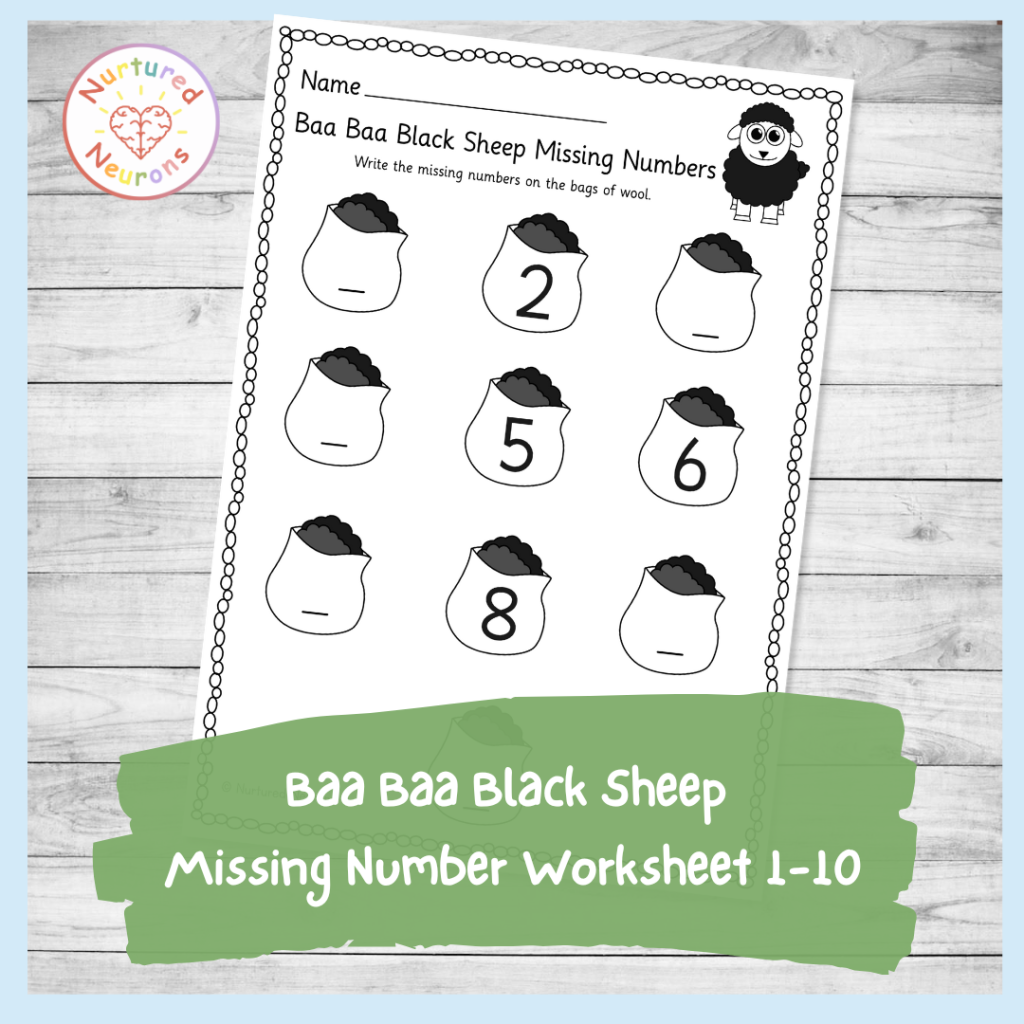 Baa Baa Black Sheep Missing Number Worksheet 1 10 Nursery Rhyme Printable Nurtured Neurons