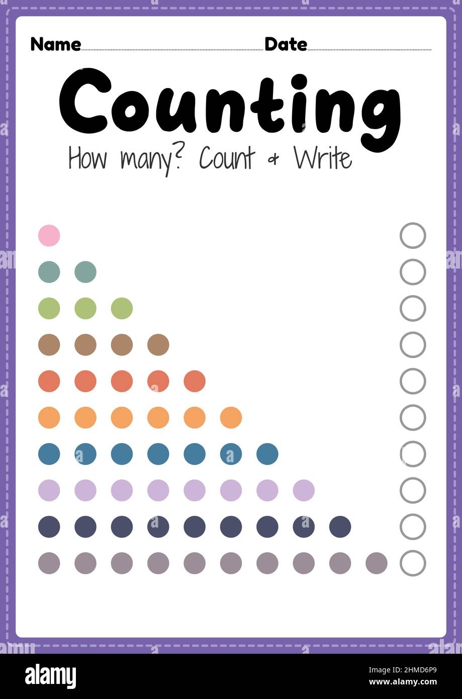 Counting Worksheet Math Printable Sheet For Preschool And Kindergarten Kids Activity To Learn Basic Mathematics Count And Write Skills Stock Photo Alamy