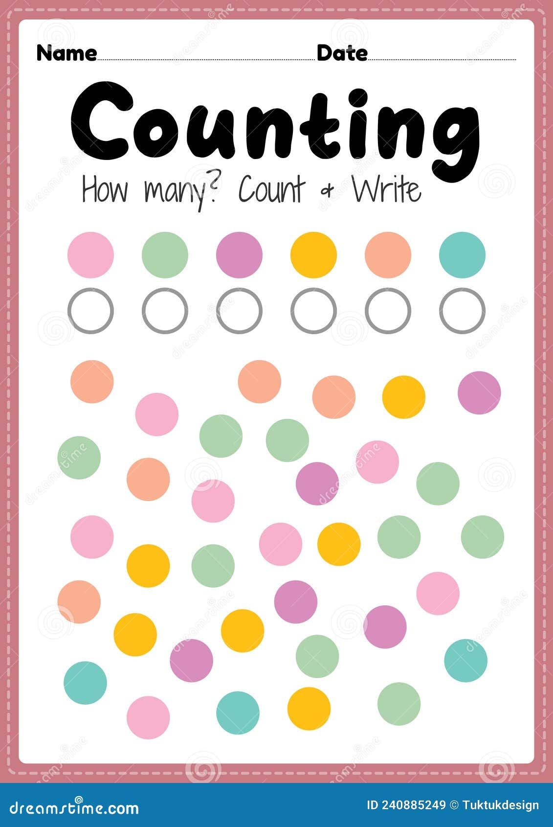 Counting Worksheet Math Printable Sheet For Preschool And Kindergarten Kids Activity To Learn Basic Mathematics Count And Write Stock Illustration Illustration Of Nursery Kids 240885249